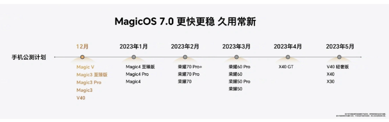 IT之家還發現,榮耀 Magic V 本周一也已經全面推送 MagicOS 7.0 版本(7.0.0.107)升級,不過最早的用戶應該在 1 月初就已經升級了。下個月,榮耀還將為榮耀 70 系列開啟 MagicOS 7.0 公測,敬請期待。