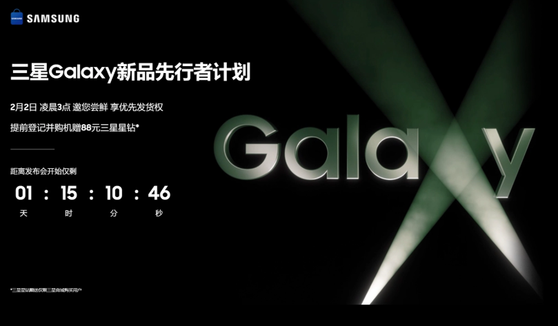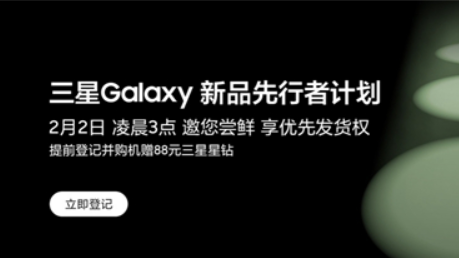 1月31日,三星官方宣布Galaxy新品先行者計劃將于2月2日凌晨3點于三星商城、三星京東自營官方旗艦店、天貓三星官方旗艦店以及指定線下授權體驗店等渠道正式開啟,目前已經全面開放預約登記。屆時,以三星商城為例,成功參與三星Galaxy新品先行者計劃登記并搶先全款預約的用戶有機會享2023年2月17日提前到店購機取貨權益,并且還可獲贈88元三星星鉆。不僅如此,用戶參與先行者活動并在指定期間內購買三星Galaxy S23系列手機,還有機會享有中國發布會后預約購機福利同等權益等驚喜禮遇。