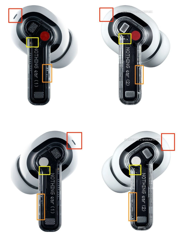 IT之家從外觀對比圖中了解到,Nothing Ear(2)的頂部取消了明顯的麥克風(fēng)切口,并調(diào)整了耳機(jī)的細(xì)節(jié)設(shè)計。整個產(chǎn)品在打磨后更有質(zhì)感,撞色設(shè)計有更明顯的對比。