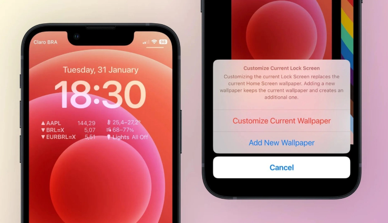 自定義當前鎖屏會替換當前的主屏幕壁紙。添加新壁紙會保留當前壁紙并創建一個額外的壁紙。