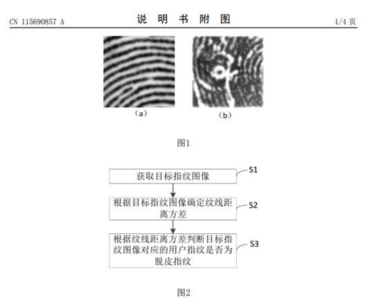 摘要顯示,本發明通過獲取目標指紋圖像,根據目標指紋圖像確定紋線距離方差,并根據紋線距離方差判斷目標指紋圖像對應的用戶指紋是否為脫皮指紋,從而實現對用戶指紋的檢測,在提高指紋識別準確性的同時,有效避免因目前無法識別脫皮指紋,導致脫皮指紋被錄入而導致后續無法識別的問題。
