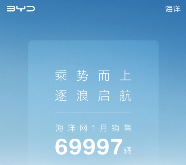 此外,海洋網(wǎng) 1 月銷售 69997 輛。海洋網(wǎng)車型方面: