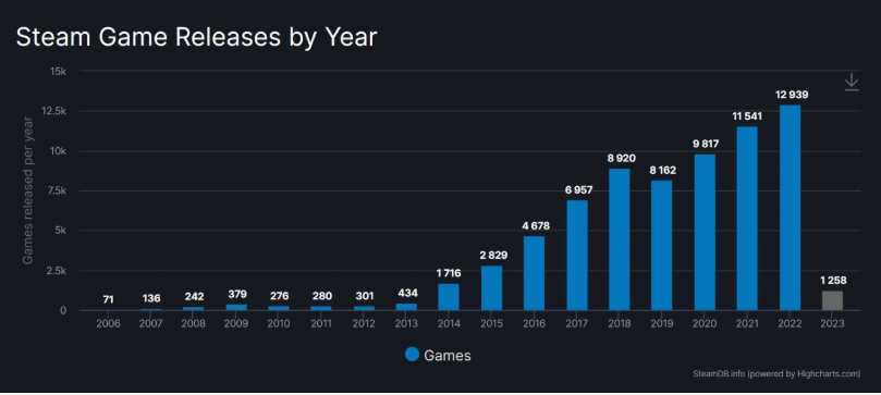 原標(biāo)題:Steam 在 2022 共計(jì)上線(xiàn) 12939 款游戲再創(chuàng)新高