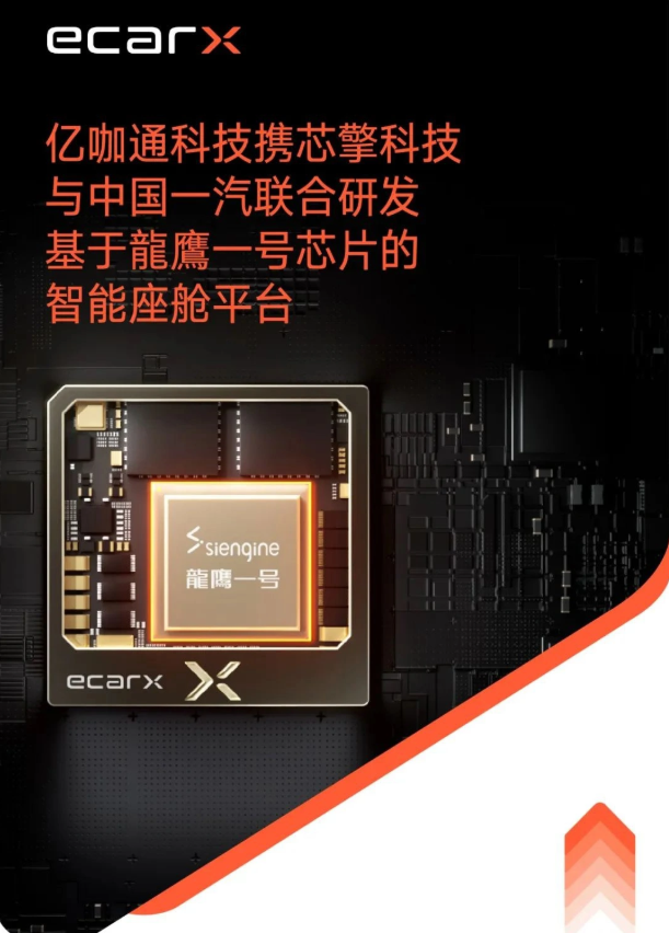 中國一汽將基于嵌入了芯擎科技 7nm 制程車規級芯片“龍鷹一號”的億咖通科技高性能智能座艙計算平臺(以下簡稱“該平臺”,工程代號:E04),與億咖通科技共同打造下一代智能座艙,并將搭載于中國一汽旗下品牌車型。