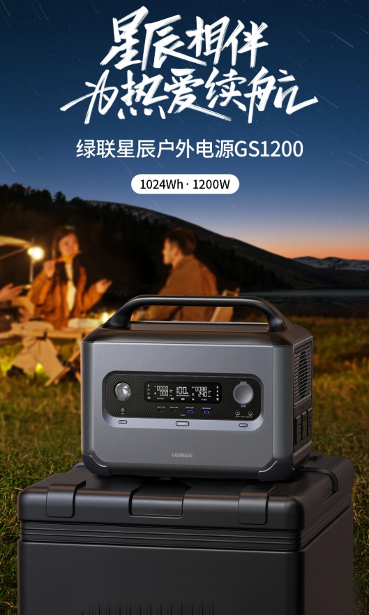 2 月 7 日消息,據綠聯官方消息,與比亞迪聯合打造的星辰戶外電源 GS1200 上市,1200W 高功率,1024Wh 大容量,首發 3999 元。