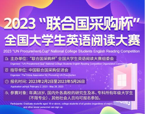 貫徹落實民政部、教育部、人力資源社會保障部印發的《關于推動社會組織進一步助力高校畢業生等群體就業工作的通知》的文件精神,在國內外有關單位支持下,中國聯合國采購促進會牽頭組織經過了數月的籌備,“2023聯合國采購杯全國大學生英語閱讀大賽”現在正式啟動并接受國內外高校大學生報名。