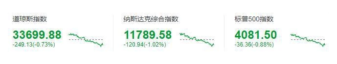 2月10日消息:美國時間周四,美股收盤主要股指全線下跌,連續(xù)兩天下跌。道瓊斯指數(shù)收于 33699.88 點(diǎn),下跌 249.13 點(diǎn),跌幅 0.73%;標(biāo)準(zhǔn)普爾 500 指數(shù)收于 4081.50 點(diǎn),跌幅 0.88%;納斯達(dá)克指數(shù)收于 11789.58 點(diǎn),跌幅 1.02%。