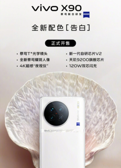 原標(biāo)題:3999 元起,vivo X90 全新配色「告白」今日正式開售:天璣 9200、蔡司 T * 鏡頭、120W 閃充