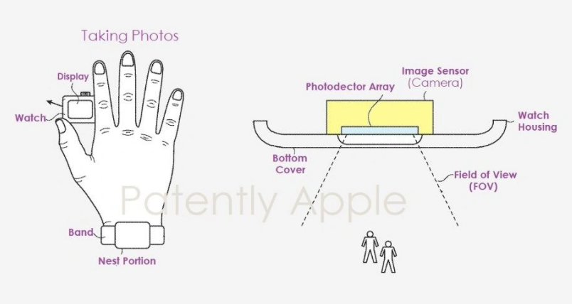 IT之家查閱了蘋果于 2019 年獲得的 Apple Watch 設計專利,當時蘋果的想法是在 Apple Watch 表帶末端裝備可旋轉的攝像頭。