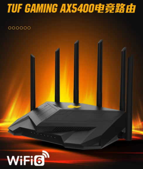 華碩 TUF GAMING AX5400 支持 Wi-Fi 6 協(xié)議,擁有 2.4GHz 和 5GHz 雙頻,5GHz 頻段上支持 4*4 160MHz,總的傳輸速率可達 5400Mbps。此外,這款路由器與網(wǎng)易 UU 加速器有合作,送 40 天會員。路由器的詳細參數(shù)信息未列出。