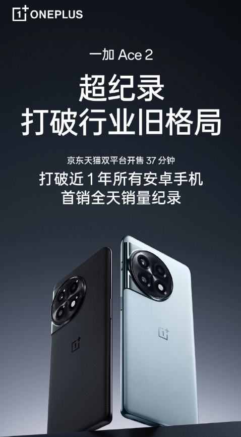 目前,一加手機官方已公布一加 Ace 2 首銷戰報,稱“一加 Ace 2 京東天貓雙平臺開售 37 分鐘,打破近 1 年所有安卓手機首銷全天銷量紀錄”。