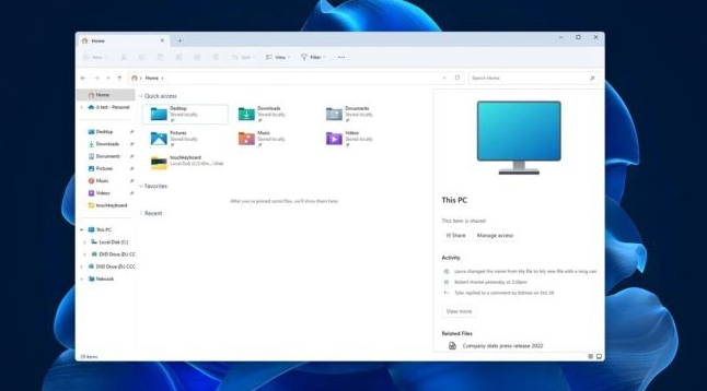 根據消息來源,文件資源管理器將有一個新的主頁,集成本地文件管理器體驗和 Microsoft 365.