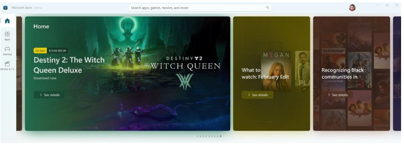 重新設計 Microsoft Store 主頁面上的特色產品布局,全新的用戶界面和動畫效果更加人性化。
