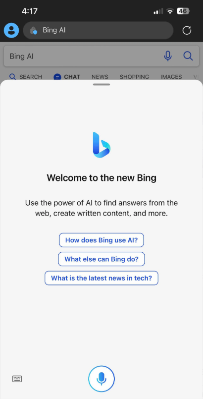 2 月 20 日消息,微軟現在正在向一些測試者的移動設備推送由 ChatGPT 驅動的移動版新必應,有用戶反映新版的用戶界面已經更新,但具體功能似乎還不可用。