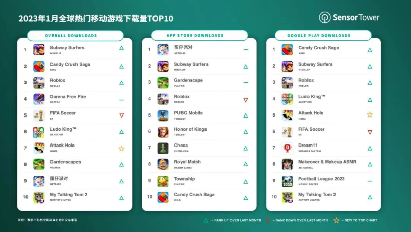 2 月 21 日消息,Sensor Tower 今日發布報告稱,2023 年 1 月,全球手游在 App Store 和 Google Play 的下載量為 50 億次,同比下降 2%。
