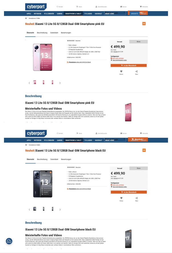 2 月 21 日消息,小米官方已經確定將于 2 月 26 日,在歐洲市場推出小米 13 和小米 13 Pro 兩款機型。歐洲零售商 Cyberport 近日偷跑上架了這兩款機型之外,還上架了小米 13 Lite 的產品頁面。