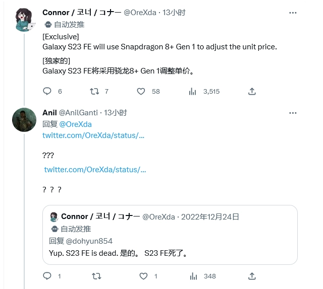 2 月 22 日消息,根據國外網友 OreXDA 爆料,三星 Galaxy S23 FE 為了“調整產品售價”,而選擇搭載高通驍龍 8+ Gen 1 芯片。他還表示會在近期分享關于該機的更多信息。