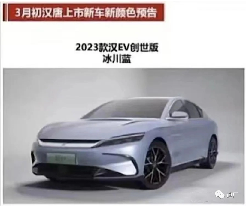 2 月 23 日消息,據迪廠消息,日前 2023 款漢 EV 創世版部分信息曝光,新車將進行 4 大升級,或將于 3 月中旬正式上市。