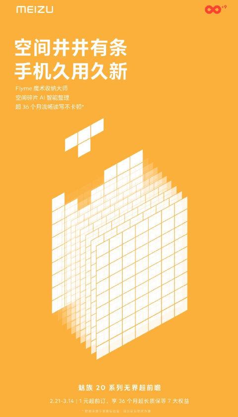 2 月 23 日消息,魅族科技今日上午帶來了魅族 20 系列的最新預(yù)熱信息,稱新機(jī)搭載 Flyme 魔術(shù)收納大師,支持空間碎片 AI 智能整理,超 36 個(gè)月流暢讀寫不卡頓,實(shí)現(xiàn)“空間井井有條,手機(jī)久用久新”。