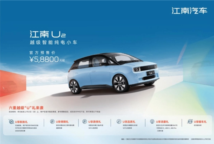 江南 U2 分為 150、300、300 S、400、400 S、400 Pro 不同配置共 6 款車型,CLTC 續航里程分為 151km、305km、406km 三個版本,預售價 5.88 萬元-9.98 萬元不等。