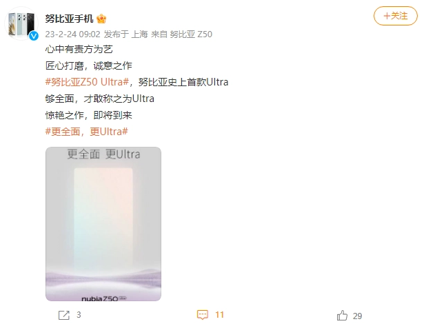 2 月 24 日消息,經過長時間的預熱和爆料,努比亞 Z50 Ultra 終于官宣,slogan 為“努比亞史上第一部 Ultra 旗艦,也是最全面的 Ultra!”