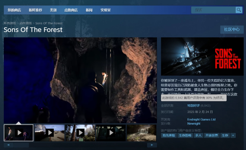 原標題:《森林之子》(搶先體驗版)現已上線 Steam 平臺,目前 90% 好評