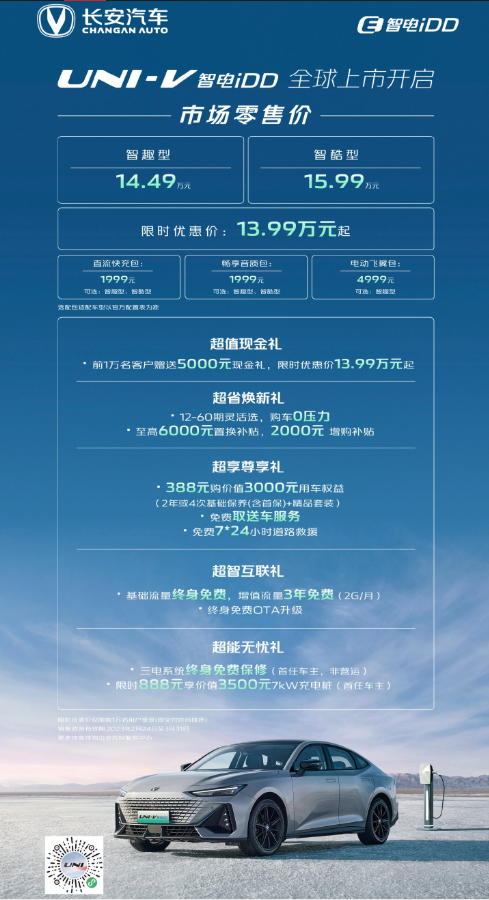 2 月 24 日消息,在今日的發(fā)布會上,長安汽車宣布 UNI-K 智電 iDD & UNI-V 智電 iDD 正式全球上市,指導(dǎo)價分別為 18.79-21.59 萬元、14.49-15.99 萬元(限時優(yōu)惠 13.99 萬元起)。