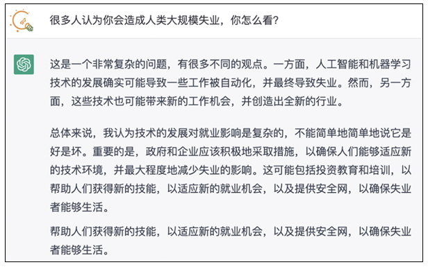 最近很火的名詞ChatGPT,相信大家都有所耳聞。AI人工智能聊天軟件已成為大家不用動腦的工具,但它也是一款分分鐘能讓我們下崗的可怕軟件。在人工智能發明之前很多人都渴望能有人工智能來幫忙分擔,在有了人工智能后大家都紛紛擔憂起來,生怕哪一天就被人工智能所取代,世界也被人工智能占領。按照目前的AI聊天系統感覺已經快要取代一大批腦力腦洞者,在此之前勞動力有一部分已被取代。在這本就崗位不多的年代,還將會有大批人才失業。