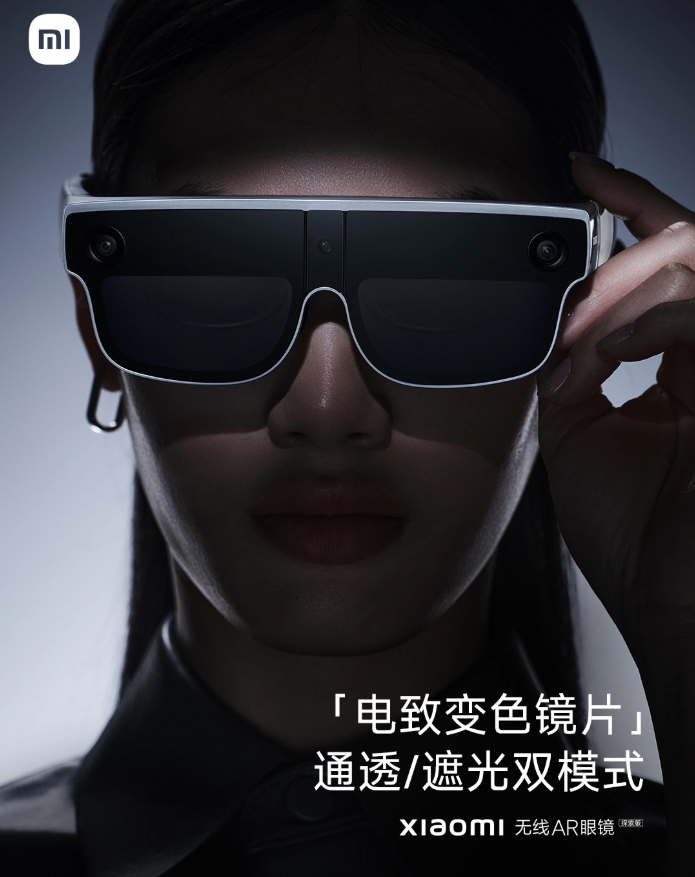 小米無線 AR 眼鏡探索版通體輕量化材質,搭配電致變色鏡片,可實現通透及沉浸雙模式顯示。
