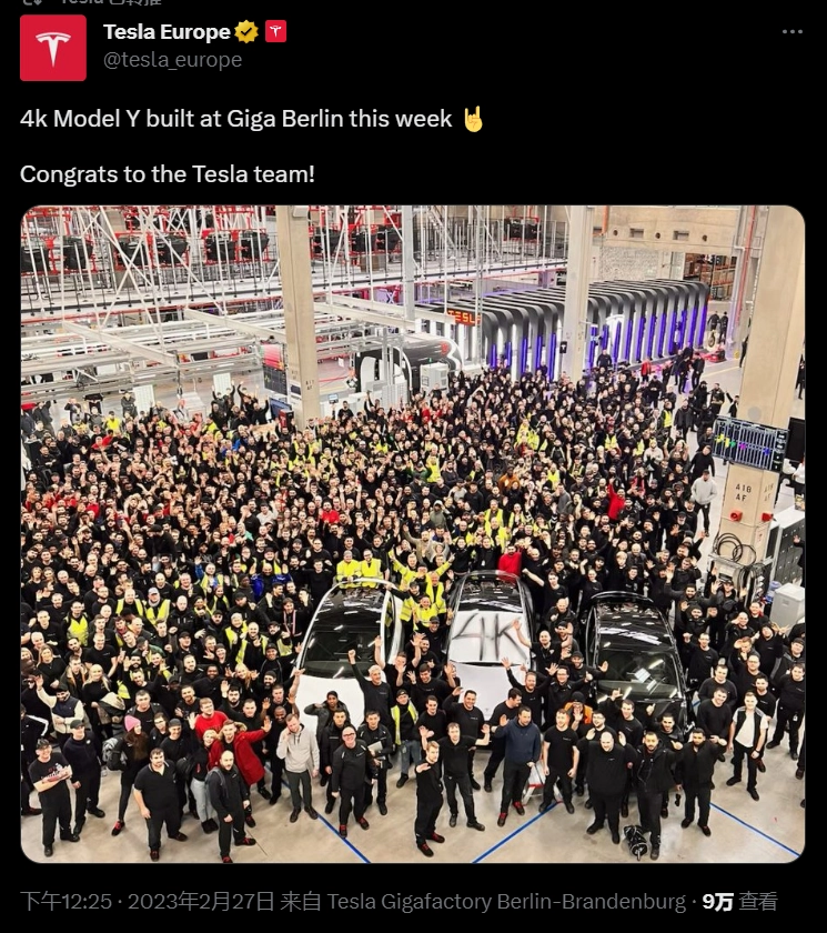 今日,特斯拉宣布柏林工廠現已成功突破 4000 臺的 Model Y 周產量,從周產量 3000 臺(可見此前報道)到 4000 臺的爬坡用了 70 天時間。