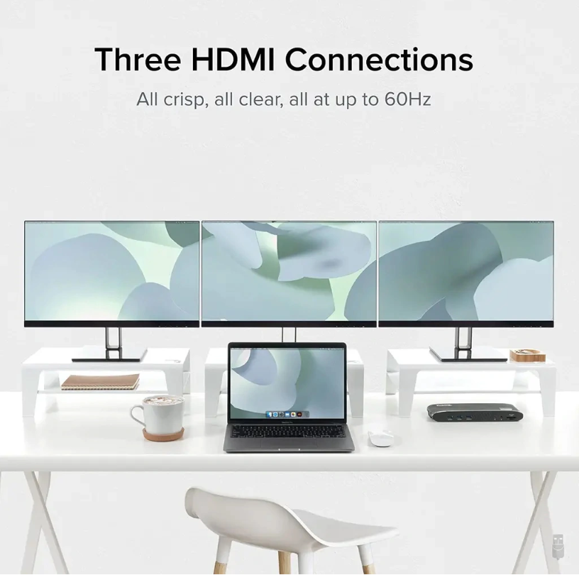 兩款擴(kuò)展塢利用 Silicon Motion (SMI) 芯片組,在 Windows、ChromeOS 和 Mac 平臺上最多可以支持三臺 1080P @ 60Hz 顯示器外接。