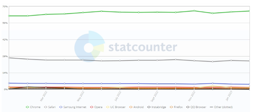 3 月 1 日消息,研究機構 statcounter 發布了 2023 年 3 月報告,揭示了有關瀏覽器的最新統計數據。