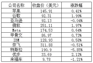 大型科技股多數上漲,谷歌和微軟漲幅超過 1%;亞馬遜和奈飛下跌,但跌幅均不到 1%。