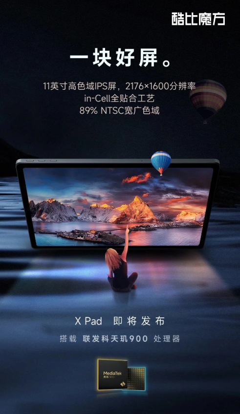3 月 3 日消息,酷比魔方 X Pad 將搭載聯發科天璣 900 芯片,采用臺積電 6nm 工藝。近期,酷比魔方預熱了 X Pad 的新特性。該平板采用 11 英寸高色域 IPS 屏,2176x1600 分辨率,in-Cell 全貼合工藝,89% NTSC 寬廣色域。