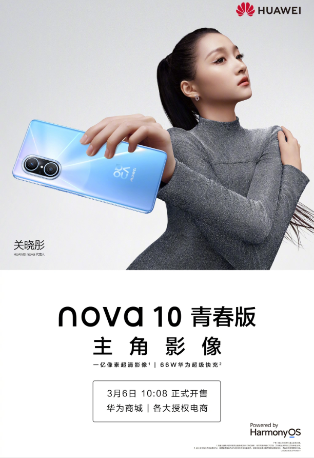 3 月 6 日消息,華為今日宣布,華為 nova10 青春版臻彩直屏手機(jī)將于 3 月 6 日 10:08 在華為商城及各大授權(quán)電商全面開售,新品限時(shí)優(yōu)惠 100 元,首發(fā)價(jià) 1699 元起。