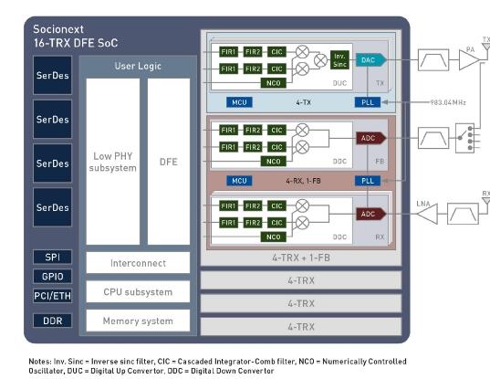 在此背景下,Socionext推出全新Direct-RF IP,該IP采用TSMC 7nm FinFET(N7)工藝設計,能在單芯片(Single die)上直接集成32TRX和64TRX,相較于市面上采用分立器件的解決方案,功耗更低。