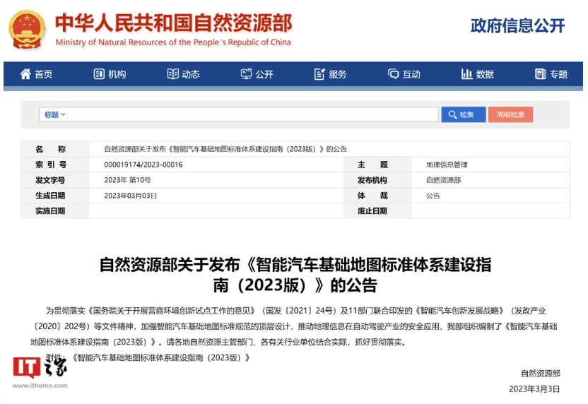 3 月 7 日消息,IT之家從自然資源部網(wǎng)站獲悉,為加強智能汽車基礎(chǔ)地圖標準規(guī)范的頂層設(shè)計,推動地理信息在自動駕駛產(chǎn)業(yè)的安全應用,自然資源部組織編制了《智能汽車基礎(chǔ)地圖標準體系建設(shè)指南(2023 版)》(以下簡稱《建設(shè)指南》)。