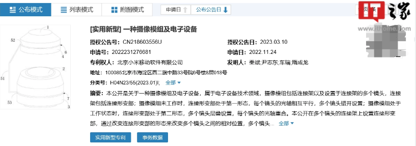 3 月 10 日消息,北京小米移動軟件有限公司申請的“一種攝像模組及電子設備”專利近期獲授權。