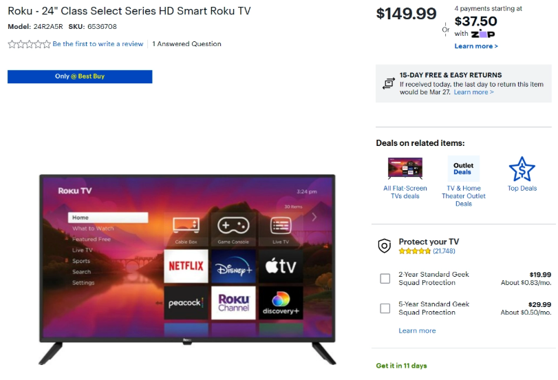 3 月 13 日消息,Roku TV 流媒體平臺首批電視產品 Select 和 Plus 系列上市,目前已在美國 Best Buy 獨家發售,其中 Select 系列售價 149.99 美元(IT之家備注:當前約 1041 元人民幣)起,Plus 系列售價 649.99 美元(IT之家備注:當前約 4511 元人民幣)起。