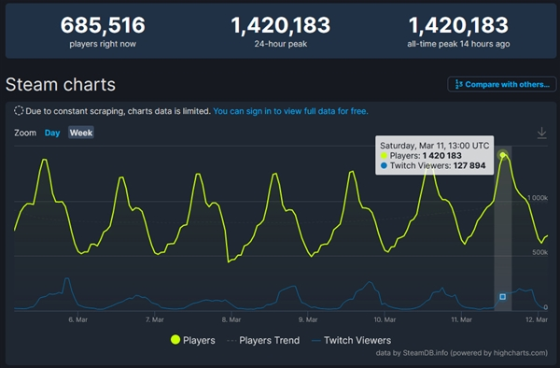 根據《CS:GO》官方與統計網站SteamDB的數據,在今天凌晨,這款游戲的在線峰值十年內首次突破142萬人,創下了新的紀錄。