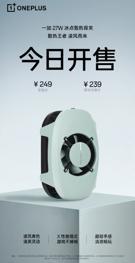 3 月 13 日消息,在此前的一加 Ace 2V 新品發布會上,一加為旗下的 27W 冰點散熱背夾推出了全新配色“凌風青”,首銷價 239 元。一加 Ace 2V 手機也將于今日上午 10 點全面開售,2299 元起。