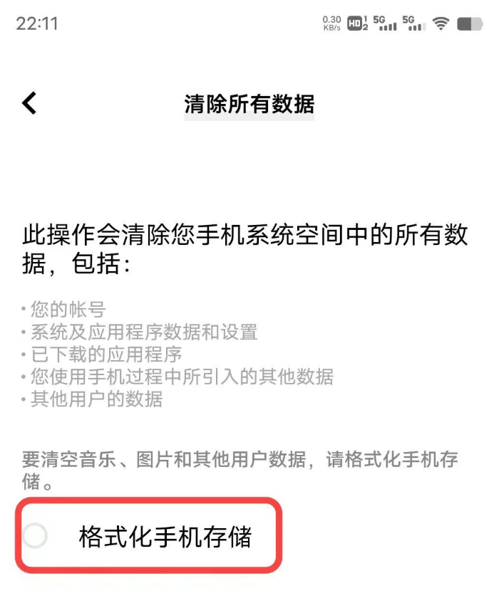 iQOO 手機表示,如果希望徹底清除手機數據,需在點擊“清除所有數據”后,勾選“格式化手機存儲”。官方同時還提醒,在清除手機數據前請做好備份,數據一旦丟失很難找回,請大家根據個人需要正確選擇需要清除的數據。