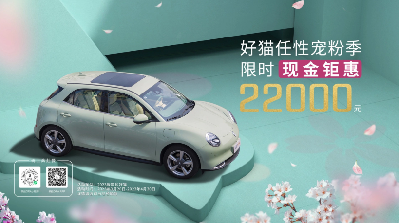 目前,新款歐拉好貓宣布開(kāi)啟限時(shí)活動(dòng),現(xiàn)金優(yōu)惠 2.2 萬(wàn)元。根據(jù)官方公布的消息,活動(dòng)時(shí)間為 2023 年 3 月 20 日到 2023 年 4 月 30 日,詳情還請(qǐng)咨詢當(dāng)?shù)亟?jīng)銷商。