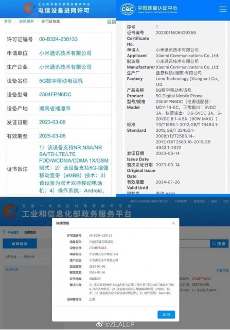 3月20日消息:不久前全新的小米13、小米13 Pro正式登陸海外市場,但此前備受矚目的小米13 Ultra旗艦新機并沒有如期亮相,而據多方爆料,小米將有望在4月推出這款頂級旗艦,截至目前關于該機的外觀和配置細節都已經有了非常詳細的爆料。現在有最新消息,近日有數碼博主進一步發現,該機已經三證齊全,靜待發布了。