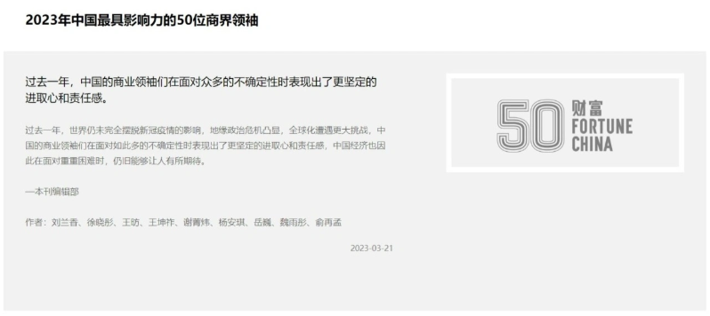 原標題:2023 中國最具影響力 50 位商界領袖榜單出爐:王傳福、張一鳴、任正非前三