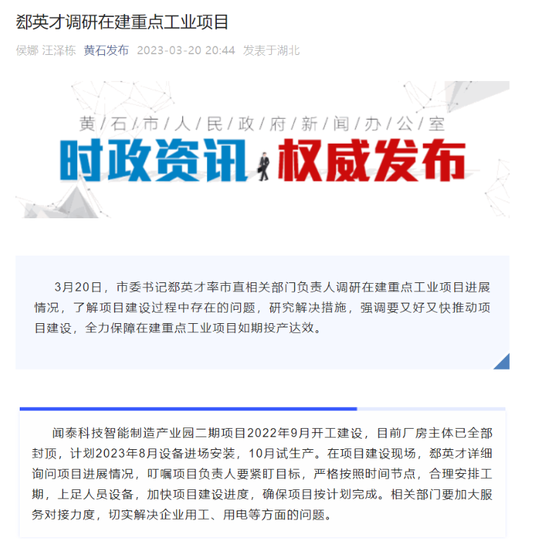 3 月 22 日消息,黃石發布公眾號發文,聞泰科技智能制造產業園二期項目廠房主體已全部封頂。該項目于 2022 年 9 月開工建設,計劃 2023 年 8 月設備進場安裝,10 月試生產。