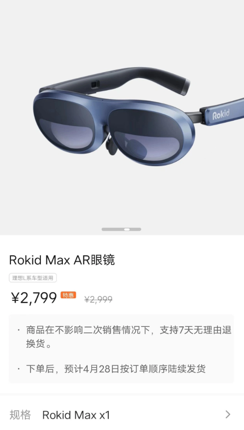 原標題:Rokid Max AR 眼鏡上架理想商城,首發 2799 元