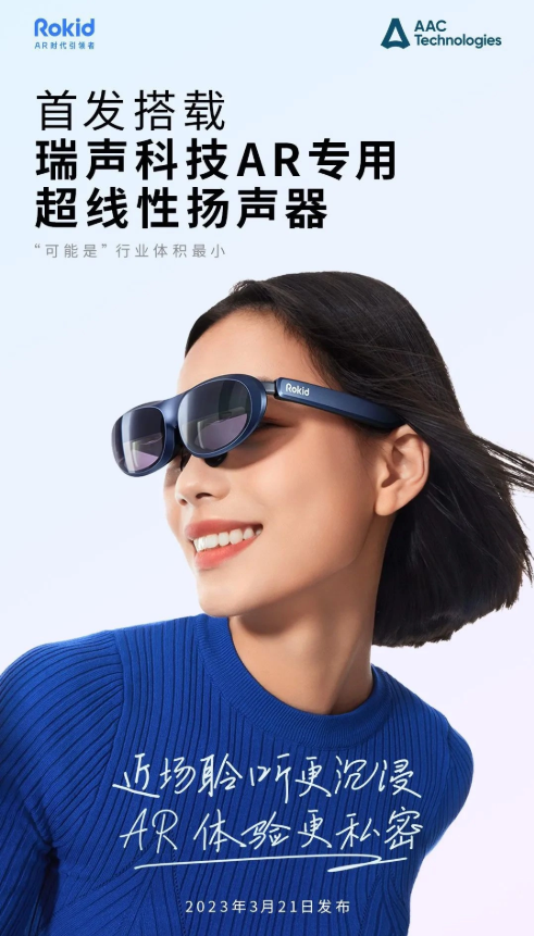 3 月 23 日消息,Rokid 近期發布了新一代智能眼鏡產品 Rokid Max。IT之家從瑞聲科技獲悉,在聲音體驗方面,Rokid Max 搭載瑞聲科技首款 AR 專用超線性揚聲器,整機便攜性與佩戴舒適性獲得提升,并帶來更沉浸、更私密的環繞立體聲音效。