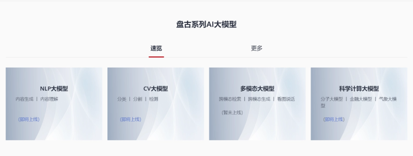 3 月 27 日消息,華為云官網(wǎng)顯示,華為旗下的盤古系列 AI 大模型即將正式上線。目前,AI 大模型中的 NLP 大模型、CV 大模型以及科學(xué)計(jì)算大模型(氣象大模型)均已被標(biāo)記為即將上線狀態(tài)。