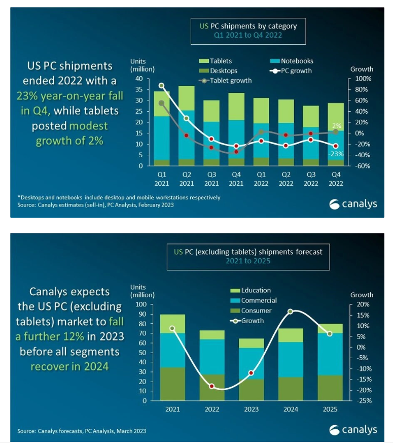 原標(biāo)題:Canalys 報(bào)告:2022 年第 4 季度美國(guó) PC 出貨量下降 23%,平板增長(zhǎng) 2%